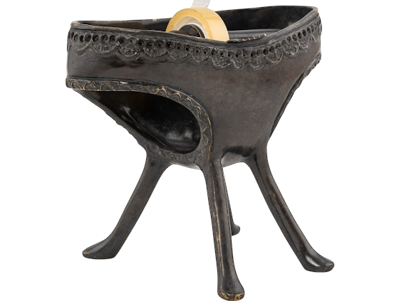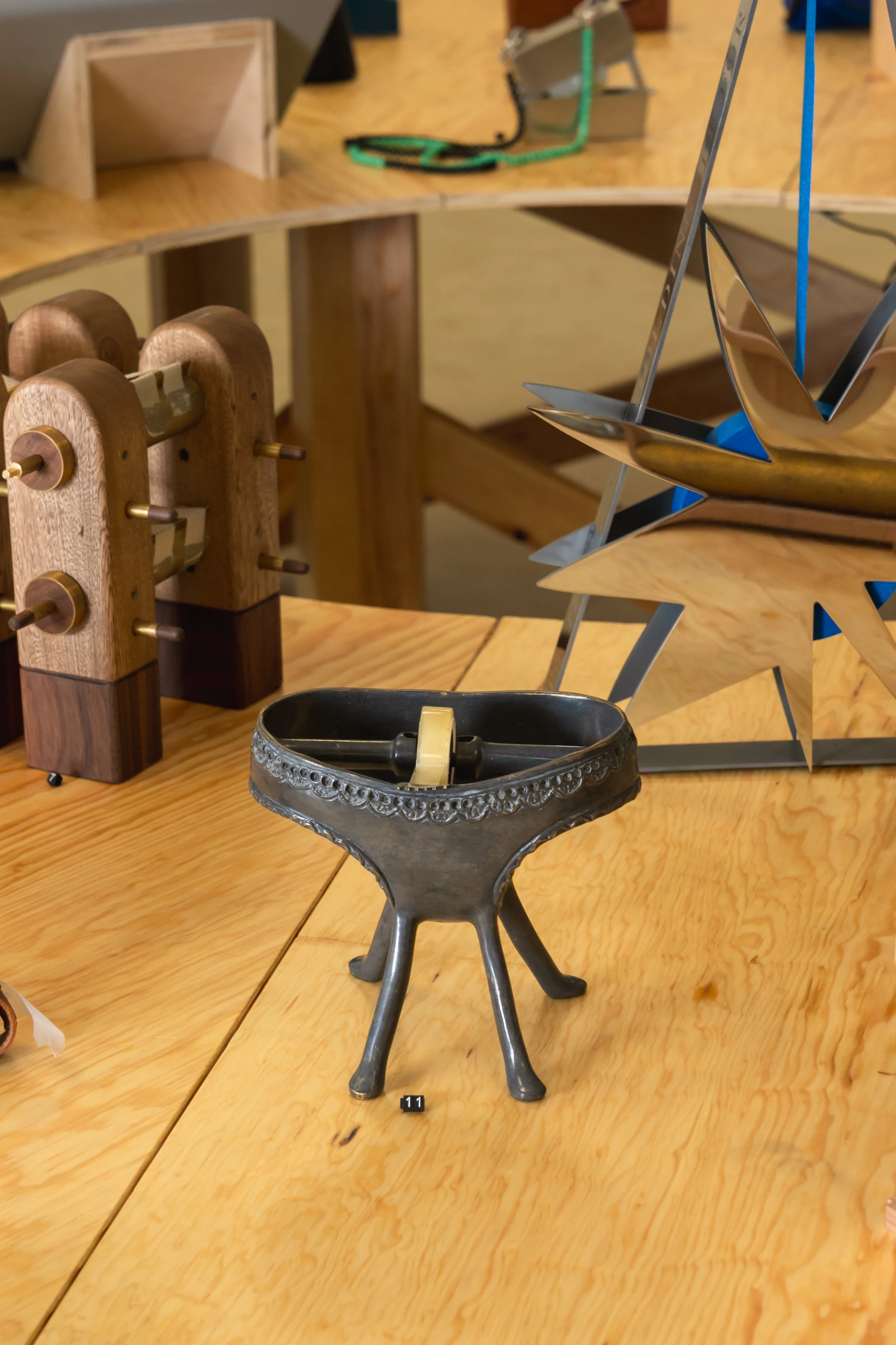 At the same time, adhesive tape is a versatile and functional element that has become an indispensable tool in our daily lives. Its ability to join and hold objects efficiently and durably makes it a symbol of engineering and innovation. The use of metal in this piece reflects the technology and durability of adhesive tape, while its panty-like shape evokes the idea of support and protection. In this way, the work explores the relationship between technology and humanity, and how the objects we use can reflect and shape our everyday experience.